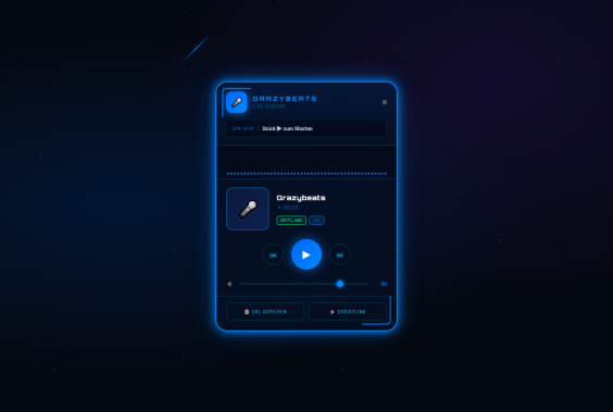 Einfach Name und Stream URL eingeben Logo Emoji und player Farbe aussuchen fertig. Radio erscheind rechts klick auf auge öffnet den player.